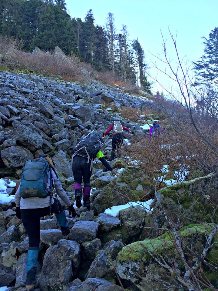 Gazing across to the summit that we had thought we reached we were taunted with lust to continue but had no option but to break for lunch and turn around due to other girls afternoon work obligations. Truly I was thrilled with the view and content on turning around because my knees were knocking by the time we got back down. Idk if I physically could have done the whole thing in one day without total exhaustion.